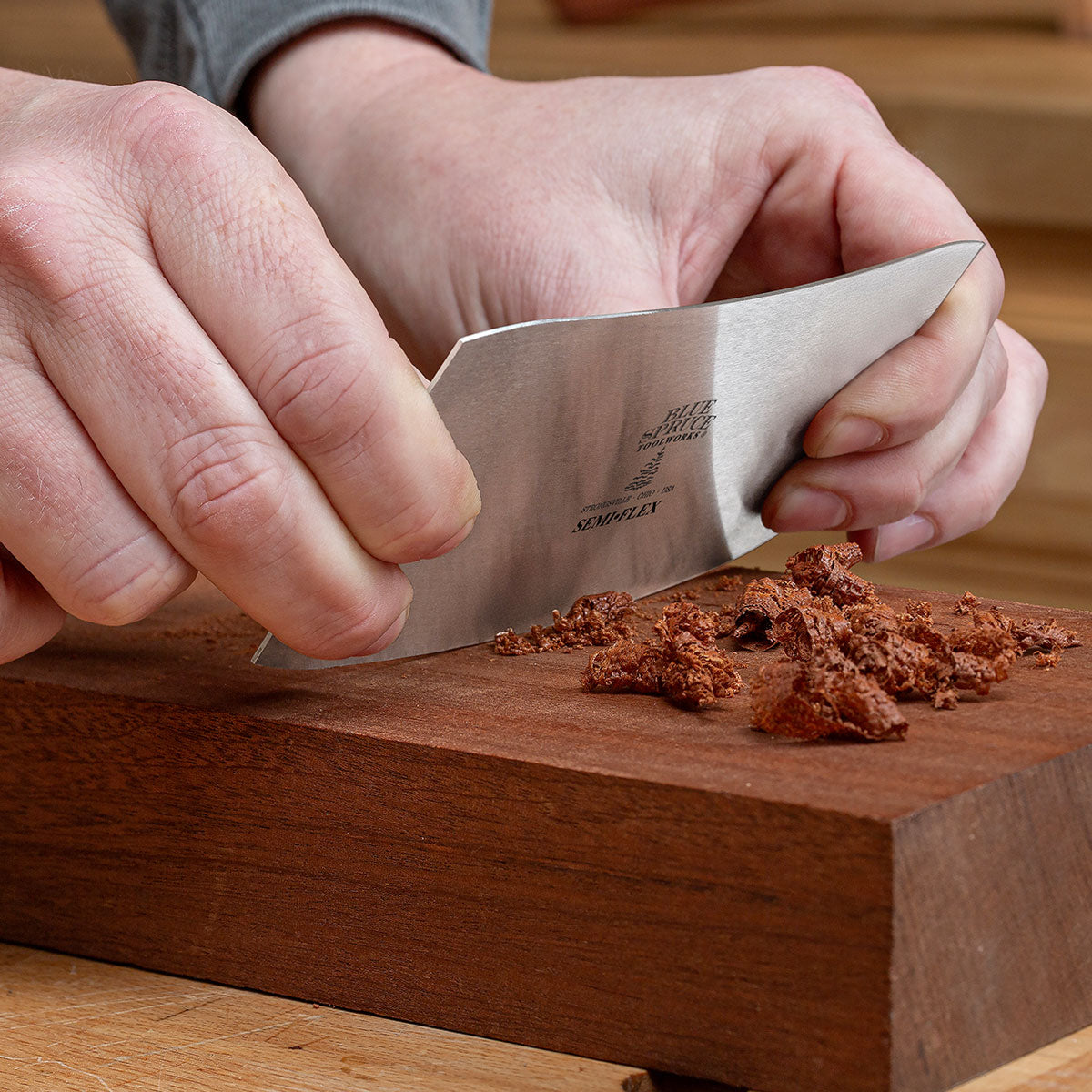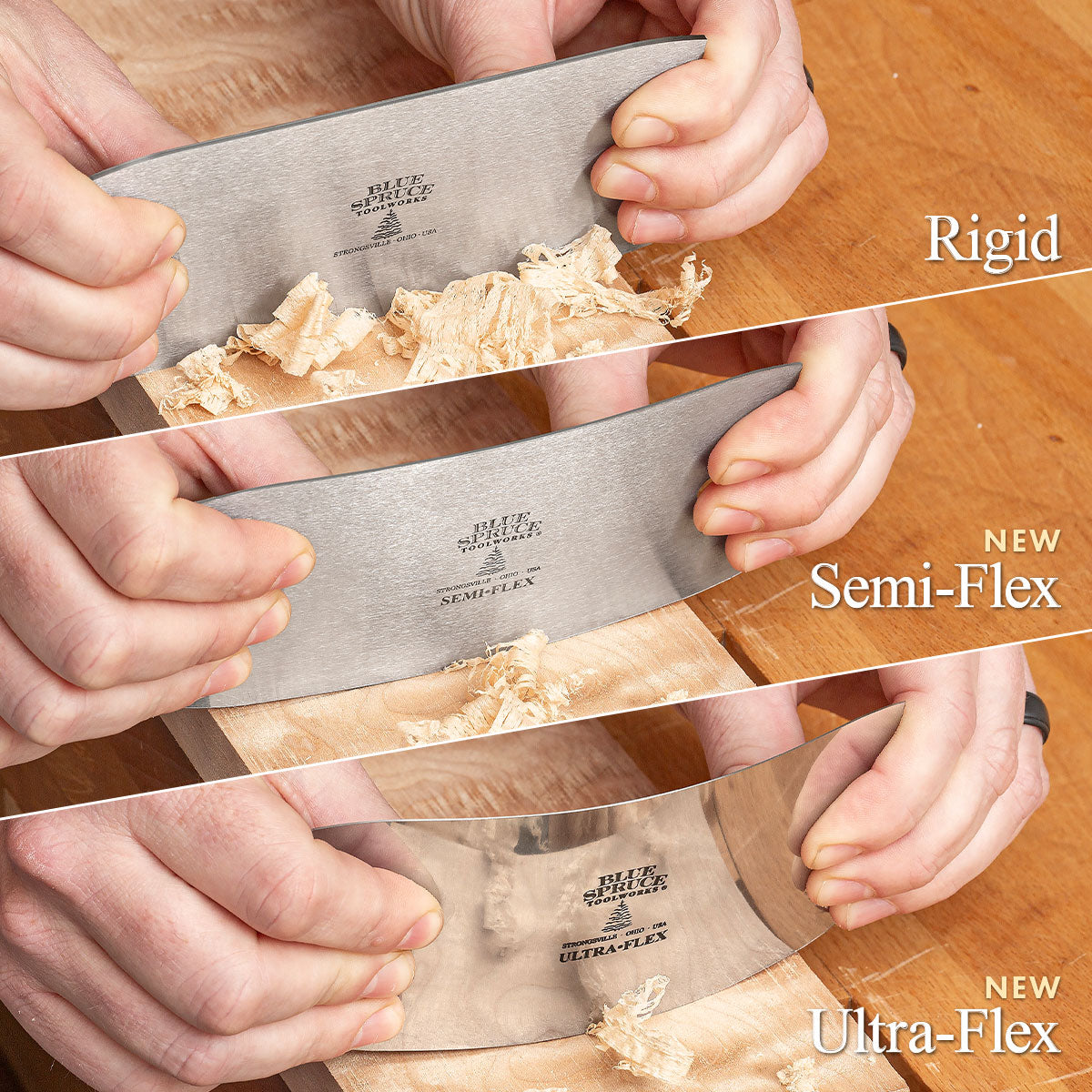 On the other hand, if you've been using card scrapers for decades and prefer the control you can get by flexing the blade, we've got you covered there, too. Our Semi-Flex .032" scrapers are made from the same 1095 tool steel as our thick blade and machined into the same profile. What's more they arrive on your door-step ready to cut, just like the thick blades. But the thinner blades flex with pressure, giving you more control over the amount of stock being removed.